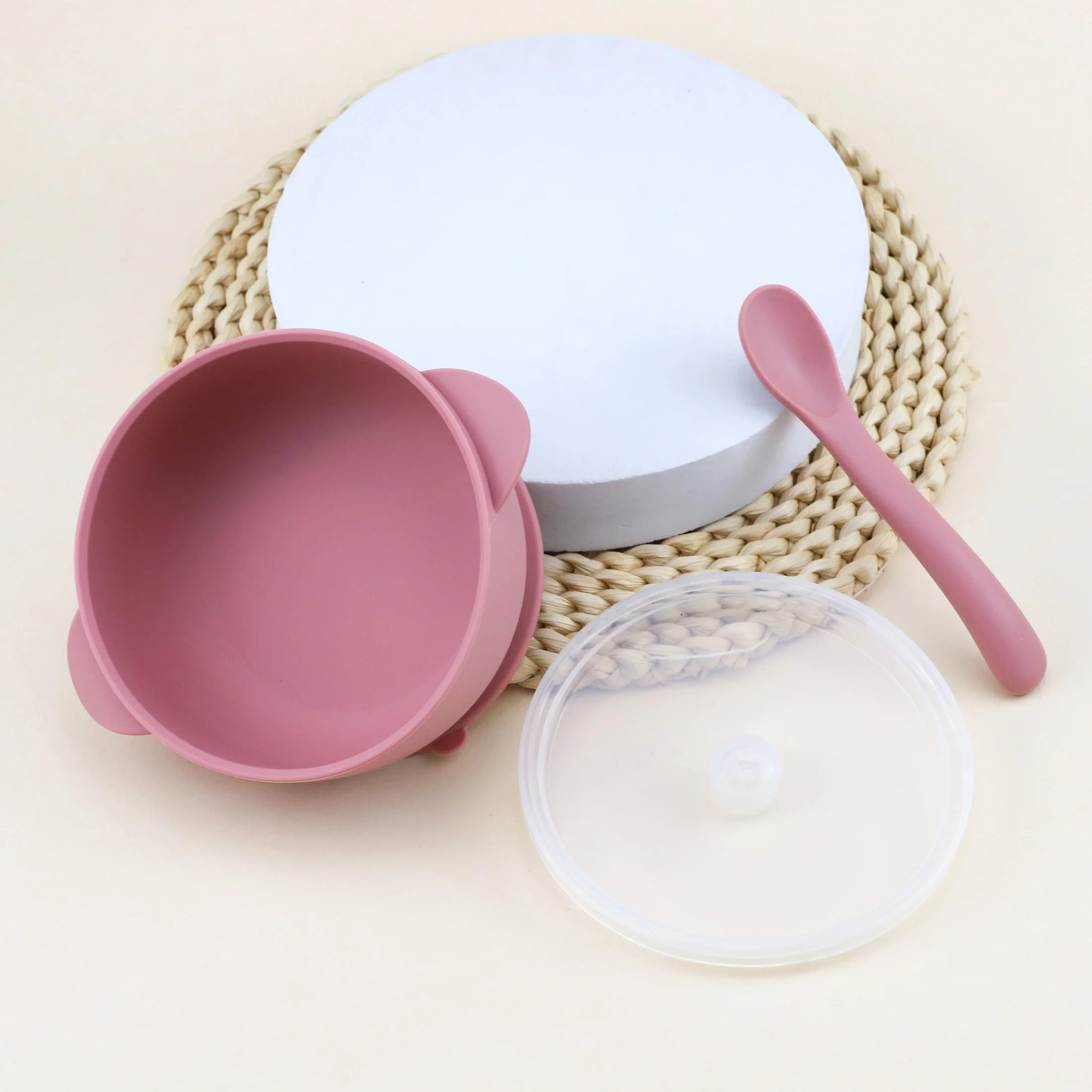 This 3-piece silicone bowl set comes with lids and a food spoon for convenience.